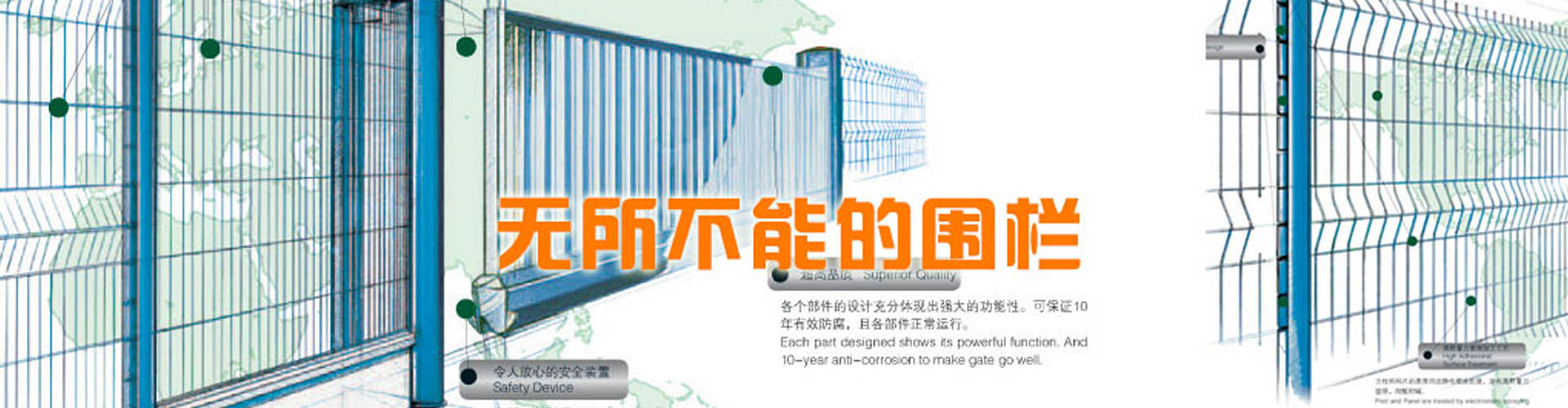 河北思固爾圍欄設(shè)施有限公司致力于專業(yè)的場地防護產(chǎn)品的研發(fā)與生產(chǎn),為全球客戶提供優(yōu)質(zhì)先進的金屬圍欄、全鋼結(jié)構(gòu)大門和其他防護產(chǎn)品及服務(wù)。思固爾圍欄以一種目前市場上成熟的設(shè)計理念將立柱與焊網(wǎng)結(jié)合在一起,可以應(yīng)廣大客戶的要求提供理想的解決方案。公司于2002年通過ISO9001質(zhì)量管理體系認證;2004年被評為項目建設(shè)先進單位,信用優(yōu)良企業(yè),科技進步先進單位;2006年底公司取得了自營出口權(quán);2006年5月10日思固爾圍欄獲得中華人民共和國國家知識產(chǎn)權(quán)局頒發(fā)的實用新型專利證書目前,公司產(chǎn)品銷售網(wǎng)絡(luò)已遍及新疆、黑龍江、遼寧、江蘇、內(nèi)蒙古、海南、廣西、廣東、湖南、湖北、上海、福建、浙江、河南、北京等全國各地,并出口至加拿大、烏克蘭、伊朗、新西蘭、泰國、俄羅斯、南非、印度、巴基斯坦、韓國等30多個國家和地區(qū)。今天的思固爾已發(fā)展成集研發(fā)、設(shè)計、制造、貿(mào)易為一體的綜合性實體公司。思固爾人一如既往地秉承之前的創(chuàng)業(yè)精神,引進與運用現(xiàn)代的管理模式,迎合未來的市場需求,竭力滿足不同客戶的需求,力爭早日把思固爾打造成中國的民族品牌!-----------------------------------------...